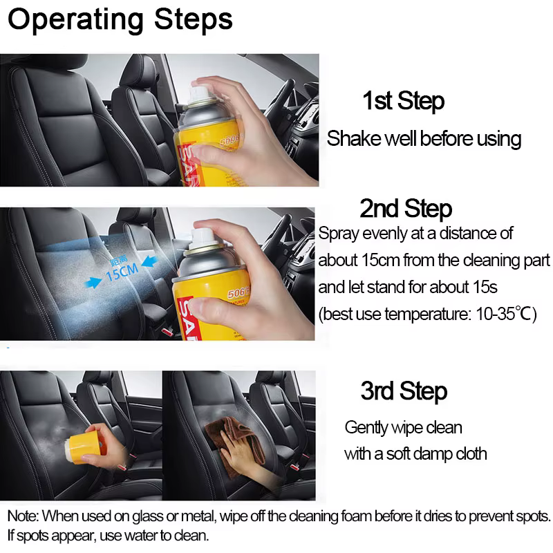 Simple to Use: No scrubbing, no soaking, no stress. Just spray the foam, wait a few seconds, and wipe clean—it’s that easy!
